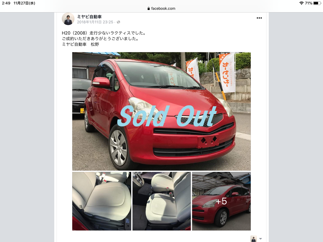 過去販売車両 トヨタ ラクティス